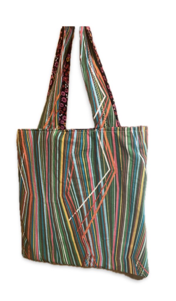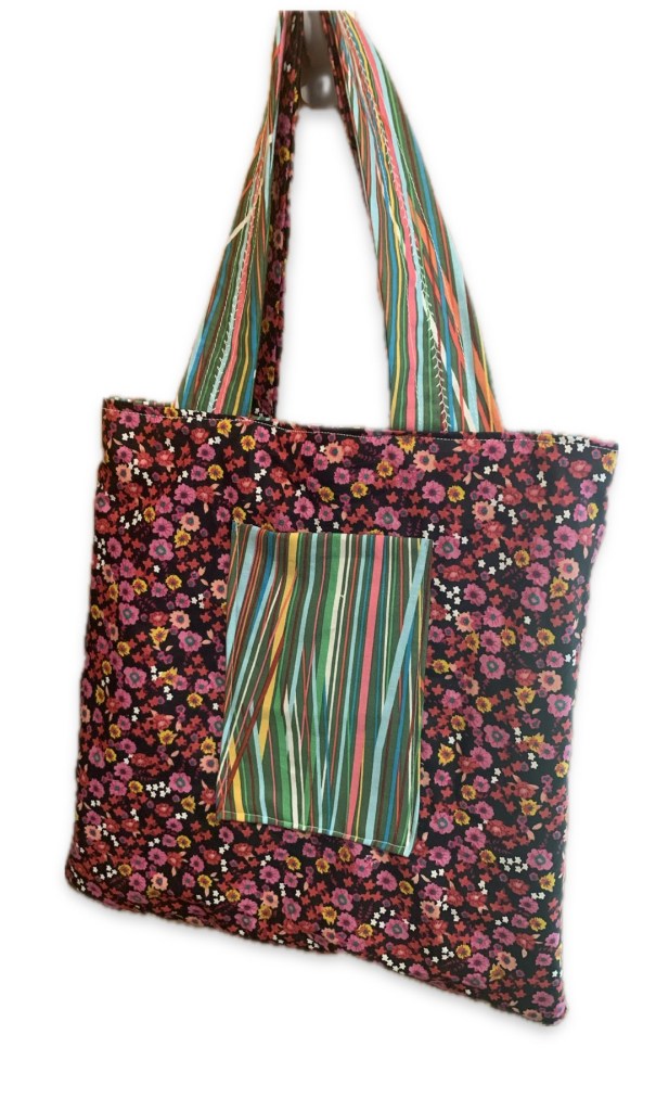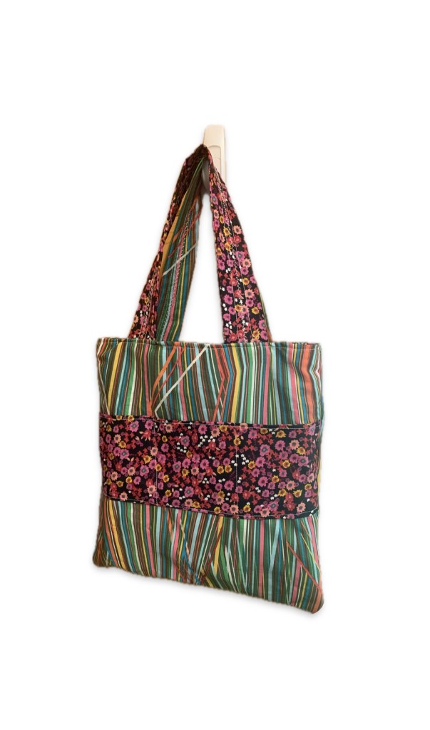 One of the first products that I tried to make with my sewing machine is a tote bag. I watched a video on Craftsy, a teaching site, and learned how to construct a tote bag by watching a few videos from an instructor. Since then, I have been using those skills to create a various number of tote bags. I like to make them reversible and add pockets of various sizes on both inside and outside. Below is a showcase of bags I have made thus far.
